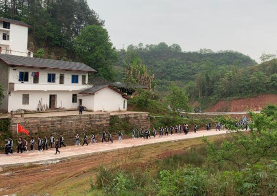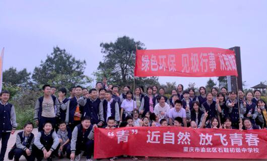 4月15日上午,石鞋中學初一、初二年級的全體師生近400人從學校出發,氣昂昂,氣昂昂。「咱們頂著天啦!不要掉隊呀……」面臨崎嶇的山間小道,孩子們相互加油打氣,一路的歡笑,讓這趟環保之旅變得生動起來。