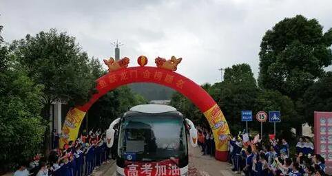 「高考加油,高考必勝!」高考學子彼此打氣登車出發,送考的校領導、陪考的高三各科任教教師與高三考生一起乘座前往雲安會都入住。考試期間,校領導、級部領導和各科任教教師將全程陪護,為學校高三學子的高考保駕護航。