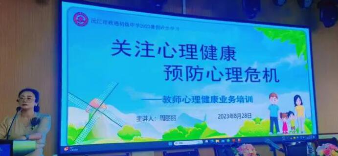 近來,沅江市政通初級中學面向整體教師開展了一場主題為《重視心思健康 防備心思危機》的教師心思健康常識業務訓練。來自該校與聯盟校泗湖山中心校各年級合計300名教師們積極參與其間。