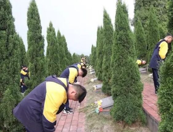 隨後,整體黨員師生到陵寢的烈士墓前向先烈們鞠躬致哀、敬獻鮮花,師生們雙眼含淚,表達了深切的哀思和思念。