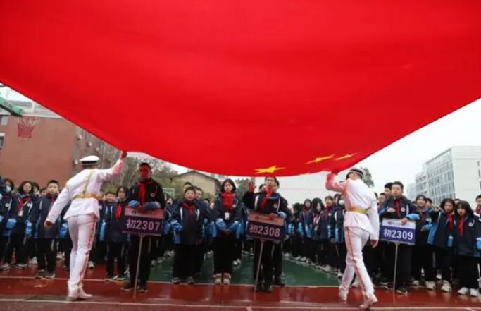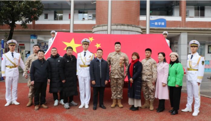 讓師生們驚喜的是,原北京天安門國旗護衛隊還帶來了壹面來自天安門的國旗,他們肩扛國旗,邁著堅決、整齊、有力的腳步從同學們的身旁走過時,同學們爭相撫摸,驕傲之感油然而生。